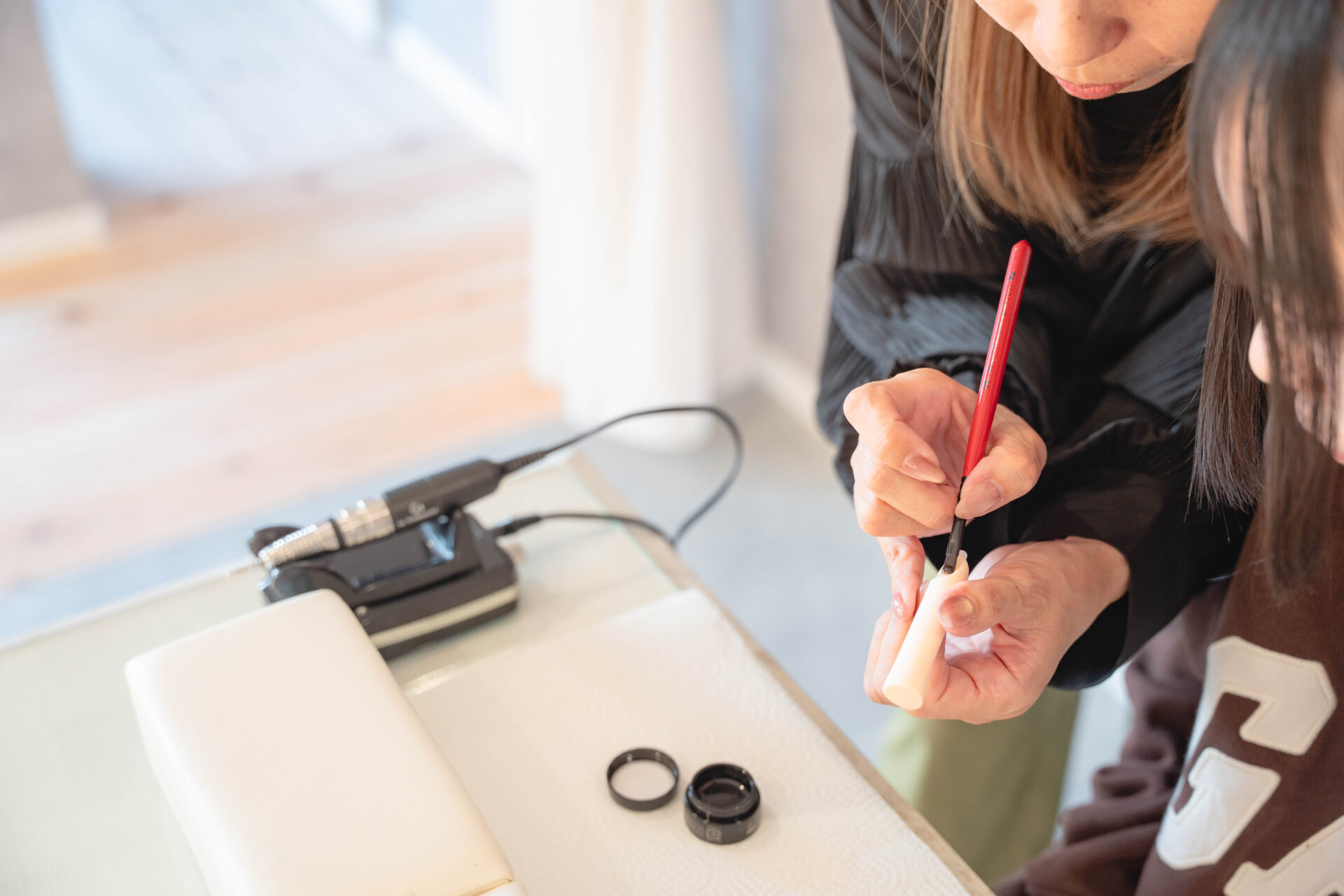 chou chou nailでは、現場で本当に役立つスキルを、ネイルマシン講師による完全対面・マンツーマンレッスンで丁寧にお伝えします。